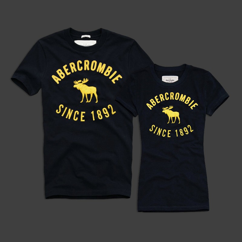 Áo cặp Abercrombie AF-AE10 màu xanh đen. Trước ngực áo là họa tiết tuần lộc cùng chữ Abercrombie since 1892 được thêu dập nổi tỉ mỉ.
