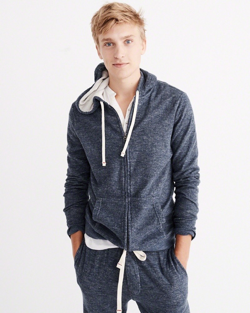 Áo khoác nam Abercrombie & Fitch AF-US-K01 Full Zip Hoodie màu xanh navy. Áo khoác Abercrombie & Fitch cực kỳ nhẹ, mềm, êm tay khi sờ. Chiếc áo khoác nam này có 2 túi 2 bên.