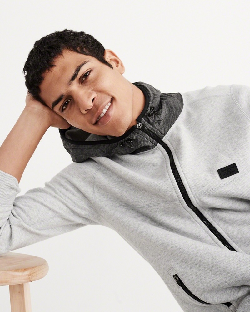 Áo khoác nam Abercrombie & Fitch AF-US-K05 Sport Full Zip Hoodie màu xám. Áo khoác Abercrombie & Fitch cực kỳ nhẹ, mềm, êm tay khi sờ. Chiếc áo khoác nam này có 2 túi 2 bên.