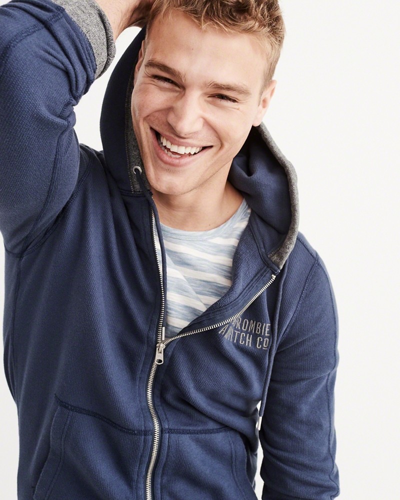 Áo khoác nam Abercrombie & Fitch AF-US-K08 Lightweight Full Zip Hoodie màu xanh navy. Áo khoác Abercrombie & Fitch cực kỳ nhẹ, mềm, êm tay khi sờ. Chiếc áo khoác nam này có 2 túi 2 bên.