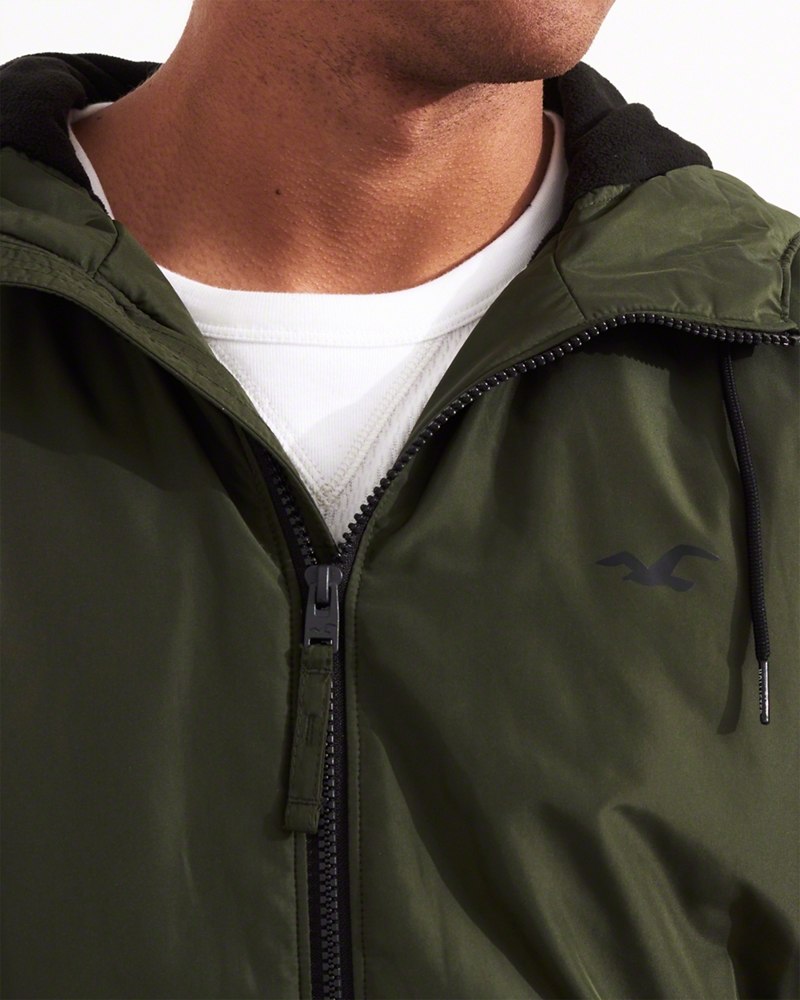 Áo khoác nam Hollister HCO-K15 Fleece-Lined Hooded Bomber Jacket màu xanh oliu. Chiếc áo khoác bomber nam Hollister cực kỳ nhẹ, mềm, êm tay khi sờ. Lớp bên ngoài áo làm từ sợi tổng hợp giúp chống nước và gió. Bên trong áo được phủ một lớp lông mỏng mịn dể giữ ấm. Chiếc áo khoác bomber này có nón tiện lợi kèm dây rút. Hàng xuất đúng đúng của Hollister Mỹ nên chất lượng cực kỳ tốt.