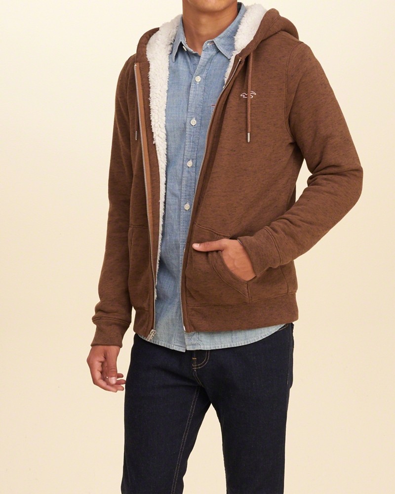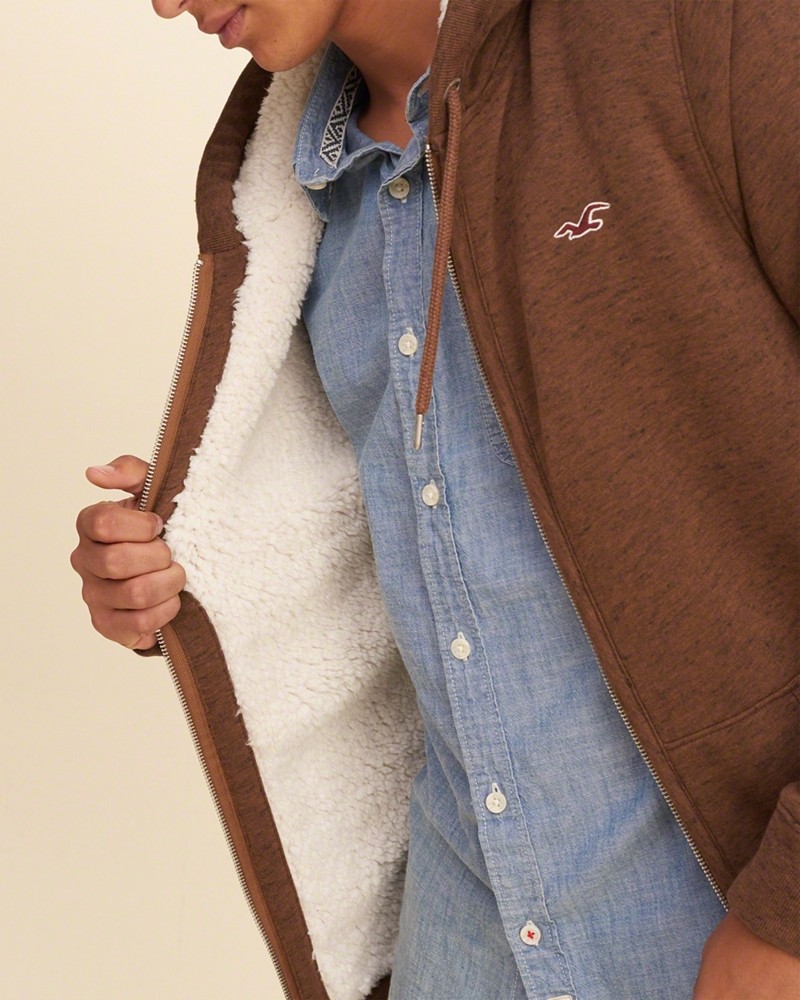 Áo khoác nam Hollister HCO-US-K05 Textured Sherpa Lined Hoodie màu nâu. Áo khoác Hollister cực kỳ mềm, êm tay khi sờ. Chiếc áo khoác nam này có 2 túi 2 bên.
