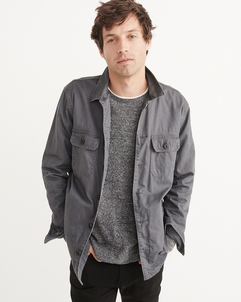 Áo sơmi nam Abercrombie & Fitch AF-US-SM57 MILITARY SHIRT JACKET là chiếc áo sơmi nam màu xám tối. Áo có chất liệu vải bằng 100% cotton, nhẹ nhàng thoải mái thường dùng trong quân đội. Áo có túi hộp 2 bên ngực trái và phải. Áo sơmi Abercrombie & Fitch này cực đẹp. Sản phẩm hàng xách tay hiện đang được bán tại Shop ABERVN – Thời trang Abercrombie & Fitch và Hollister tại Sài Gòn.