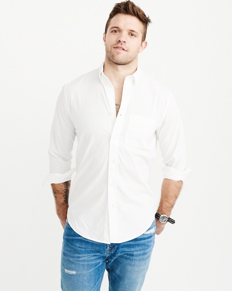 Áo sơmi nam Abercrombie & Fitch AF-US-SM73 STRETCH POPLIN SHIRT là chiếc áo sơmi nam màu trắng, có form relaxed Fit. Chất liệu vải poplin sang trọng, thấm hút mồ hôi rất tốt trong những ngày hè nóng bức. Chất liệu 98% Cotton, 2% Xla® Olefin. Áo có một túi áo bên ngực trái. Áo sơmi Abercrombie & Fitch này cực đẹp. Sản phẩm hàng xách tay hiện đang được bán tại Shop ABERVN – Thời trang Abercrombie & Fitch và Hollister tại Sài Gòn.