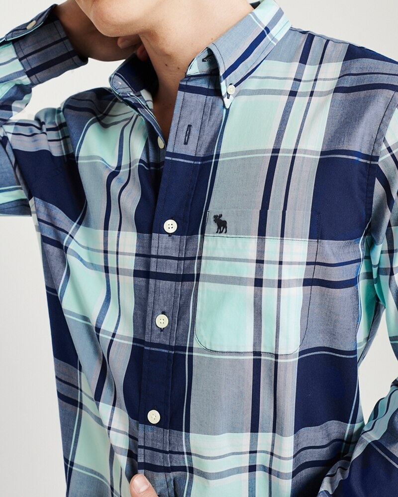 Áo sơmi nam Abercrombie & Fitch AF-US-SM82 Icon Poplin Shirt Signature Fit là chiếc áo sơmi nam màu xanh dương sọc caro trắng lớn, có form Signature Fit. Chất liệu vải poplin sang trọng 98% Cotton, 2% Xla® Olefin và thấm hút mồ hôi rất tốt trong những ngày hè nóng bức. Áo có một túi áo bên ngực trái và logo con nai và tem thương hiệu abercrombie & fitch ngay vạt áo . Áo sơmi Abercrombie & Fitch này cực đẹp. Sản phẩm hàng xách tay hiện đang được bán tại Shop ABERVN – Thời trang Abercrombie & Fitch và Hollister tại Sài Gòn.