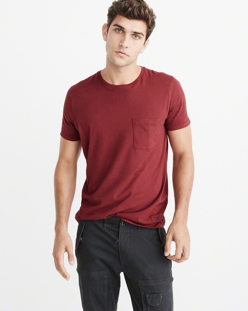 Áo thun nam Abercrombie & Fitch AF-T224 Garment Dye Crew Tee là Áo thun Abercrombie & Fitch màu đỏ đô có túi đơn giản. Chiếc áo thun nam này có thêu tem logo ngay dưới vạt áo bên trái rất style. Kiểu dáng đơn giản dễ kết hợp với quần short, quần jean hoặc quần khaki. Hàng đúng của Abercrombie & Fitch nên chất lượng cực kỳ tốt.