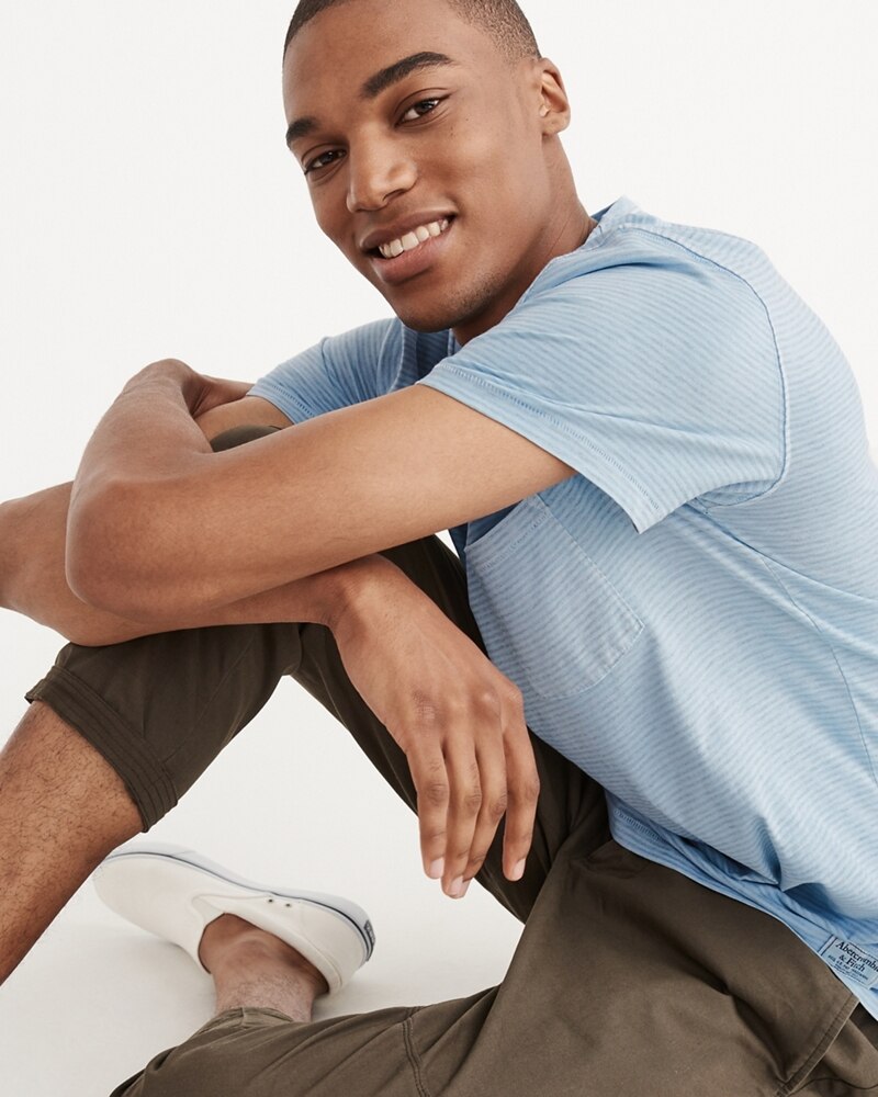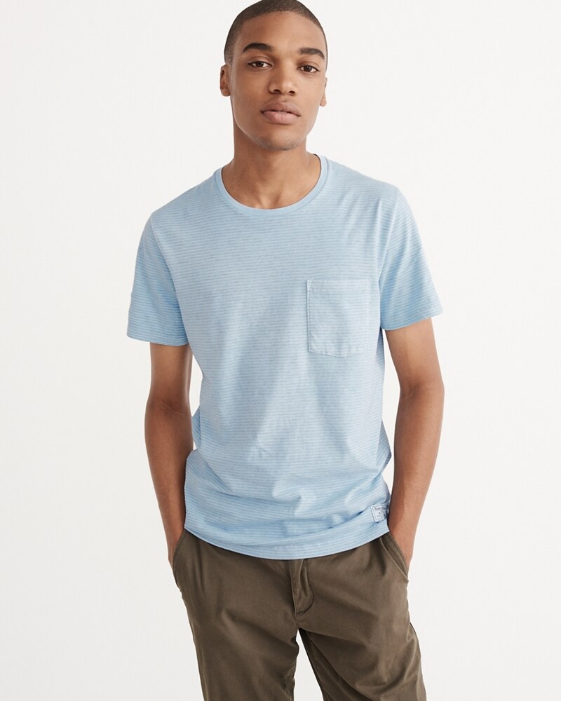 Áo thun nam Abercrombie & Fitch AF-T277 Garment Dye Striped Crew Tee là áo thun abercrombie & fitch nam cổ tròn sọc gân màu xanh da trời. Chiếc áo thun nam này có chất vải gân cotton thoáng mát, tạo cảm giác thoải mái khi mặc. Chiếc áo cổ tròn này được washed dạng garment dyed mang phong cách bụi bụi. Kiểu dáng đơn giản dễ kết hợp với quần short, quần jean hoặc quần khaki. Hàng đúng của Abercrombie & Fitch Mỹ nên chất lượng cực kỳ tốt.