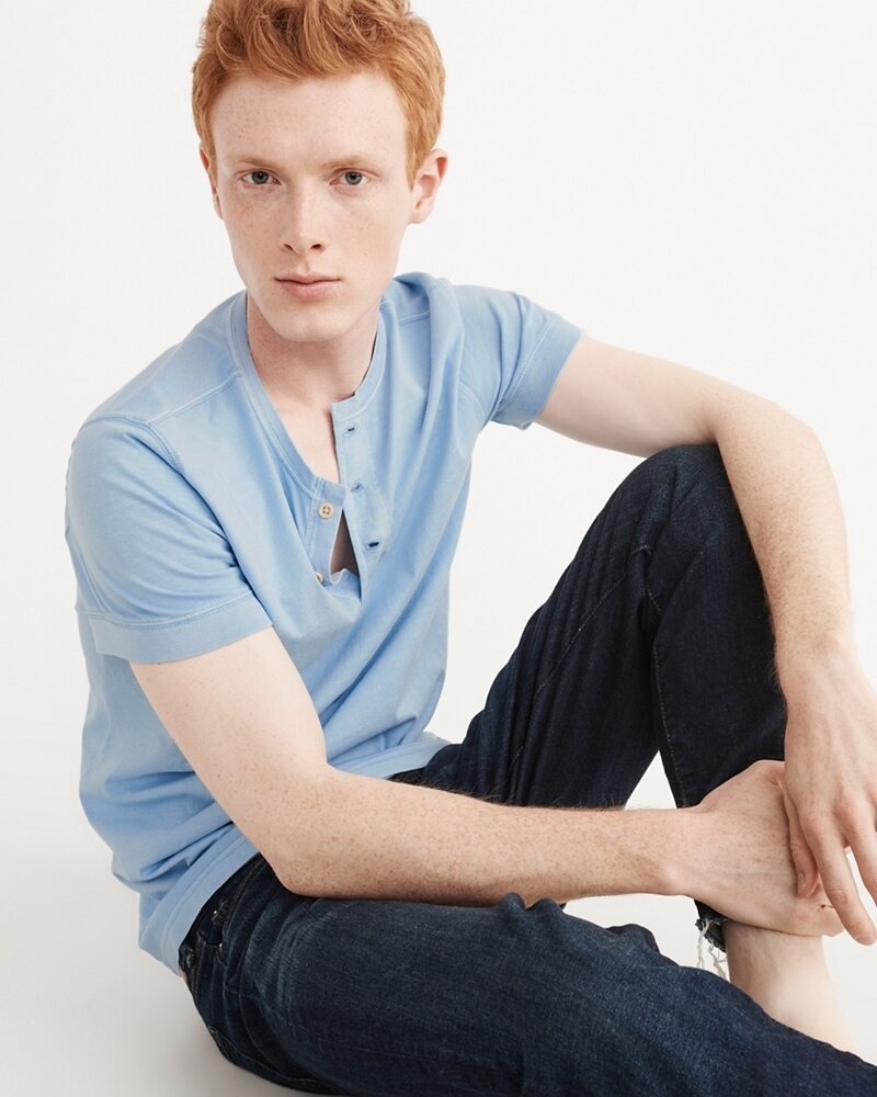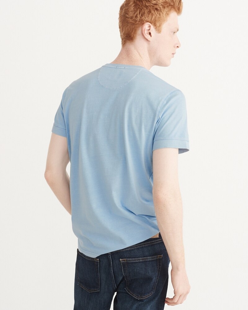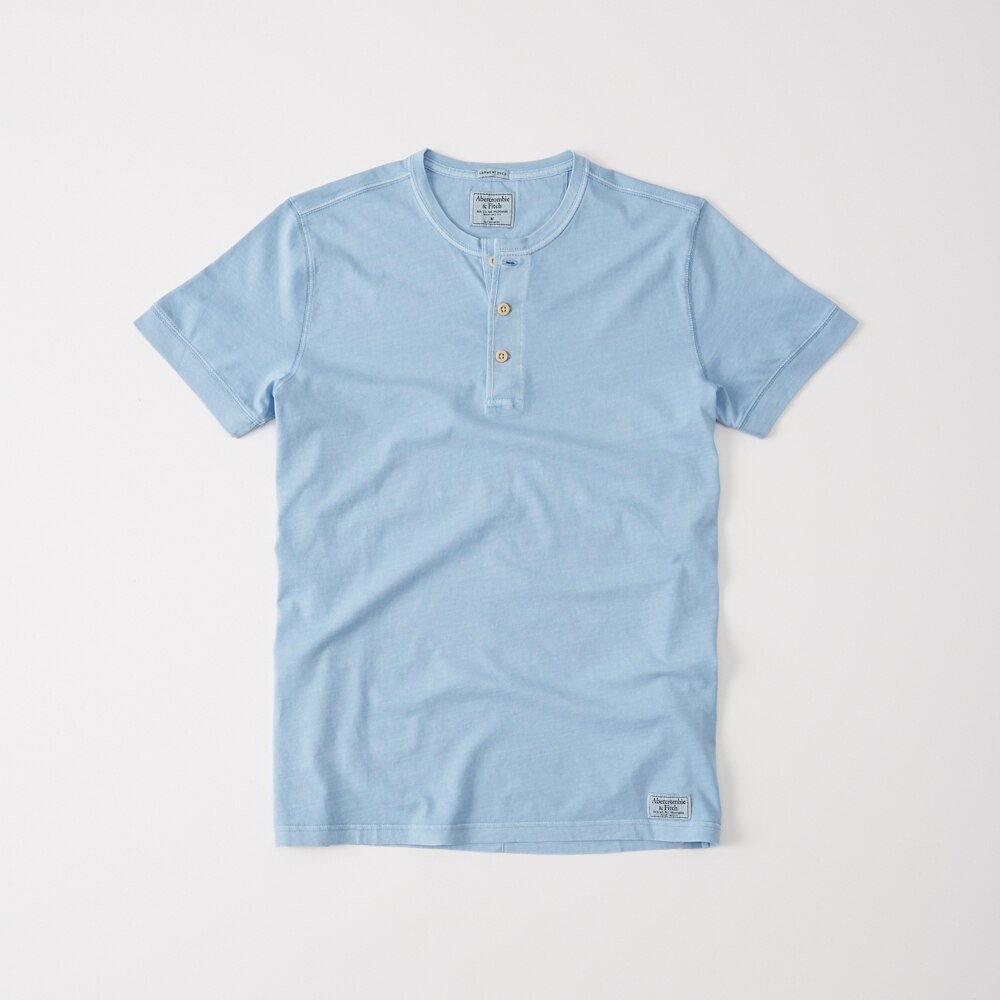 Áo thun nam Abercrombie & Fitch cổ trụ AF-H09 Garment Dye Henley Light Blue