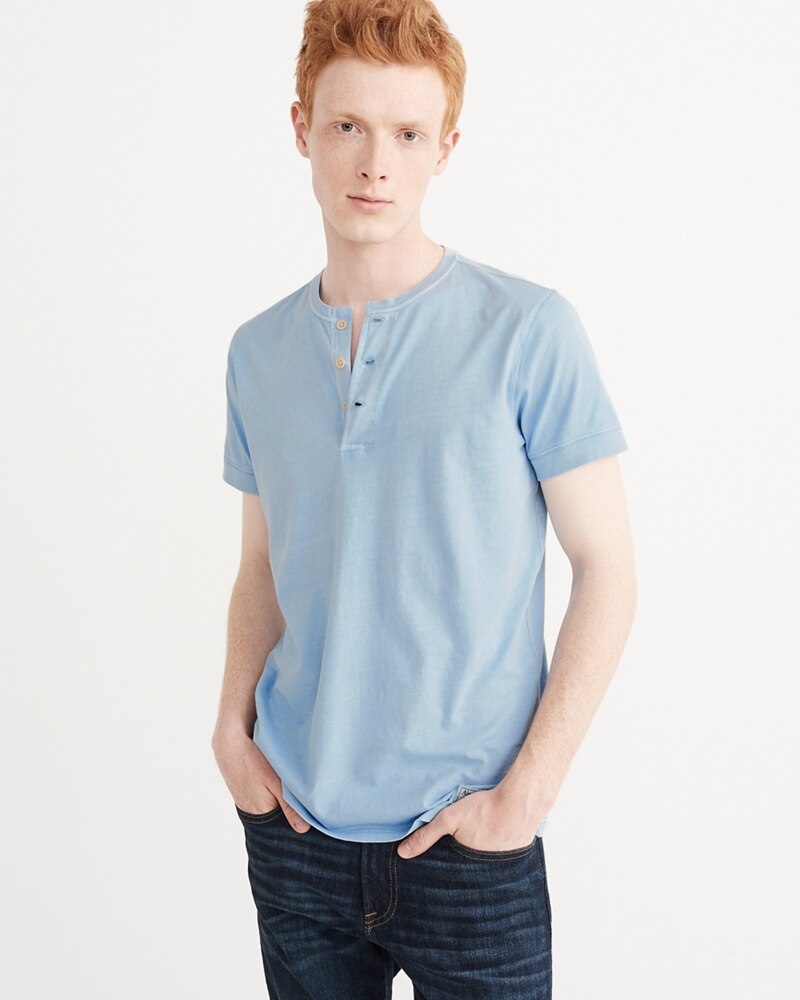 Thông tin sản phẩm Áo thun nam Abercrombie & Fitch cổ trụ AF-H09 Garment Dye Henley Light Blue: