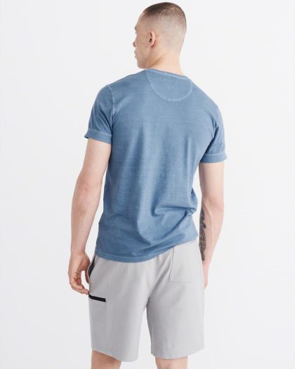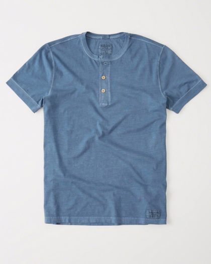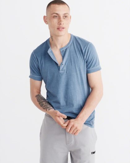Áo thun nam Abercrombie & Fitch cổ trụ AF-H14 Garment Dye Henley Blue