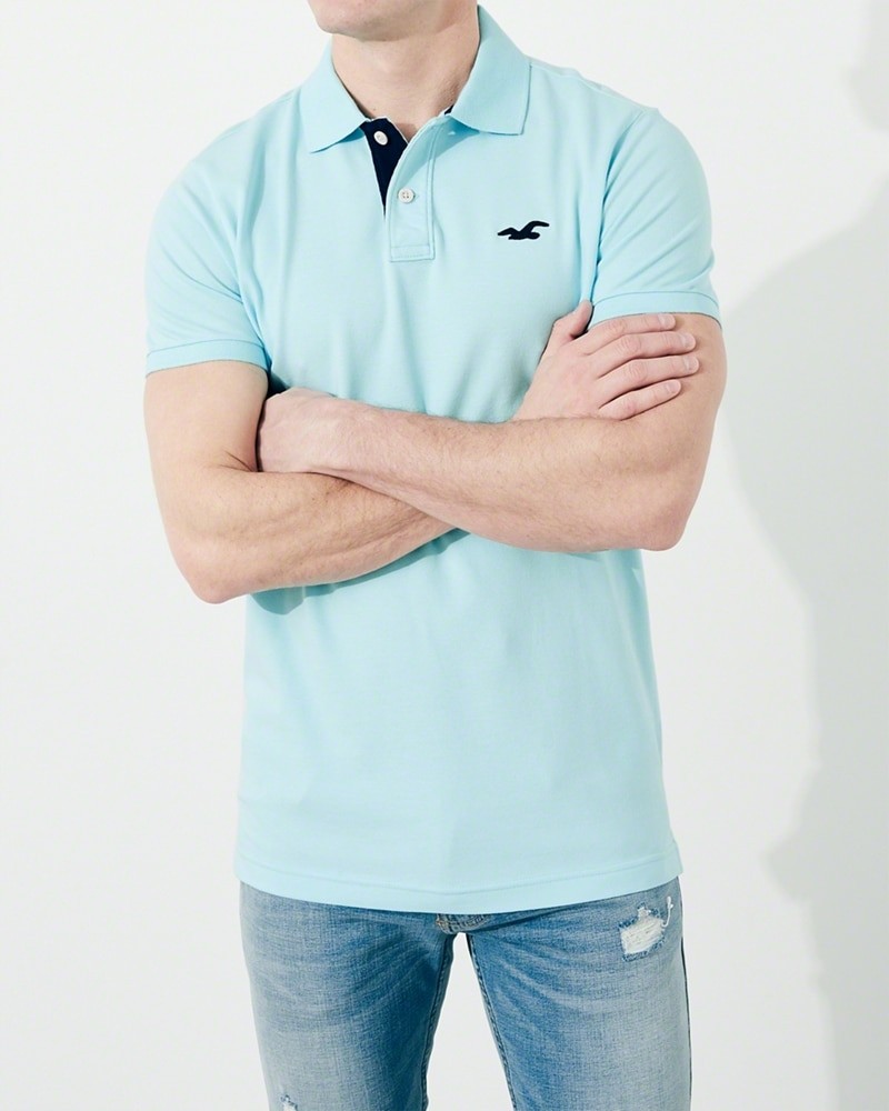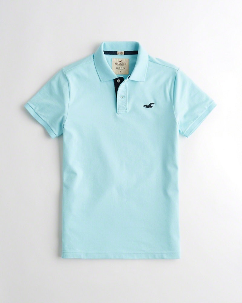 Áo thun nam cổ bẻ Hollister HCO-P141 Stretch Pique Polo light turquoise