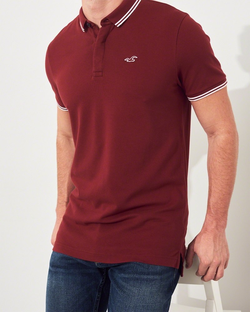 Áo thun nam cổ bẻ Hollister HCO-P161 Stretch Slim Fit Polo burgundy