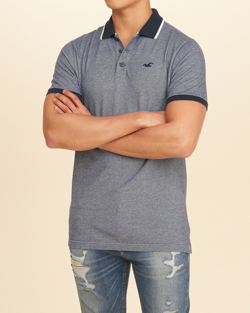 Áo thun nam cổ bẻ Hollister HCO-P251 Stretch Pique Icon Polo heather blue xanh dương pha sợi trắng. Trên ngực trái thêu biểu tượng chim hải âu màu đen rất đẹp. Áo cách điệu bo cổ xanh dương viền trắng, và bo tay màu xanh dương. Chất vải 59% Cotton, 39% Polyester, 2% Elastane thoáng mát, tạo cảm giác thoải mái khi mặc. Kiểu dáng đơn giản dễ kết hợp với quần short hoặc quần jean. Hàng đúng của Hollister Co Mỹ nên chất lượng cực kỳ tốt.