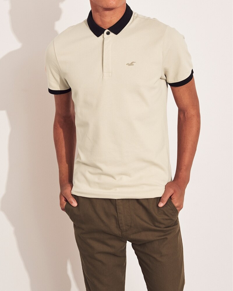 Áo thun nam Hollister HCO-P203 Stretch Shrunken Collar Polo Tan