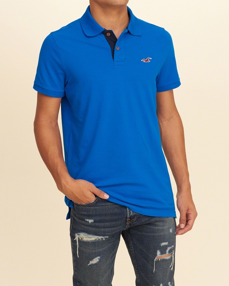 Áo thun nam Hollister HCO-P84 Stretch Pique Polo Blue