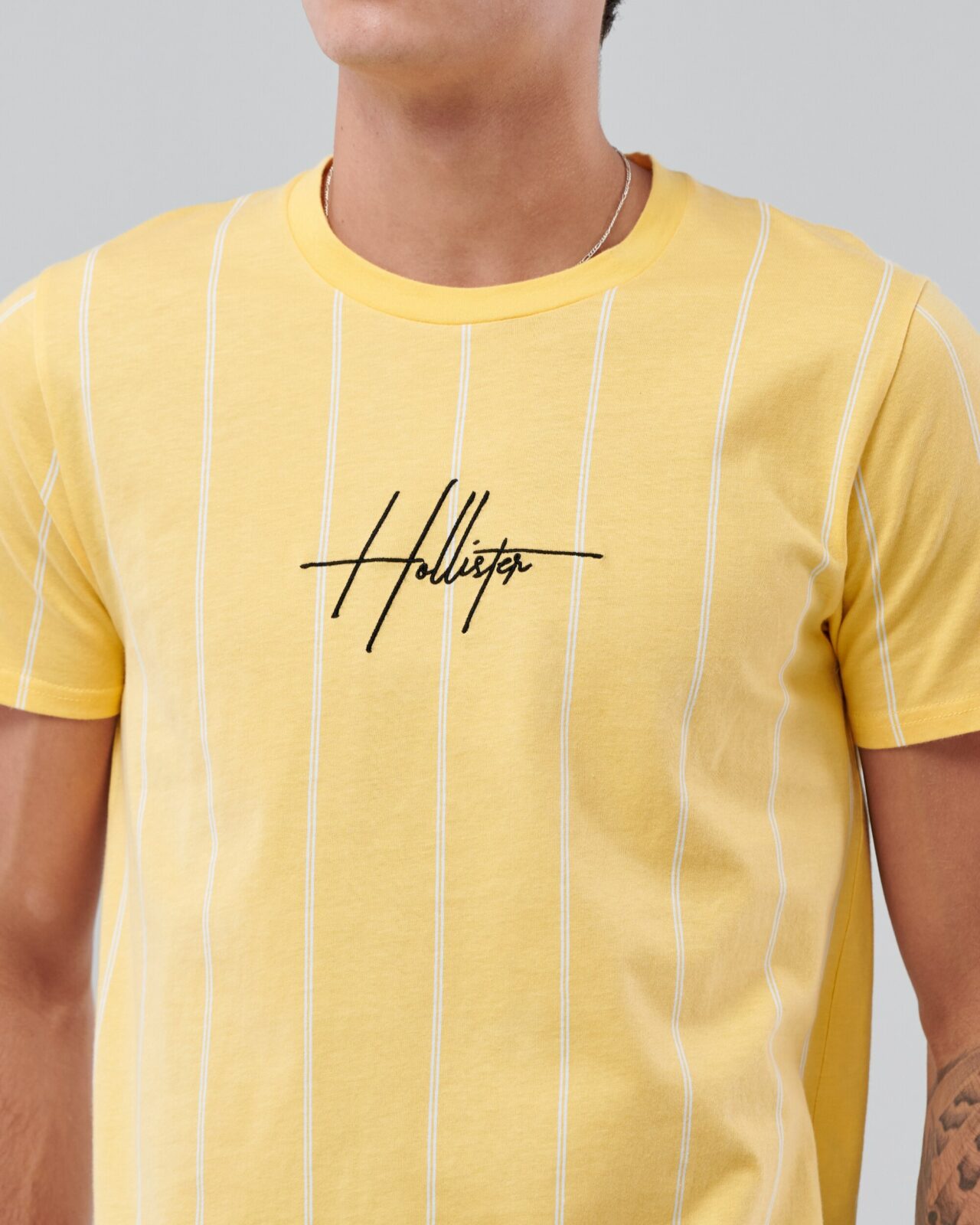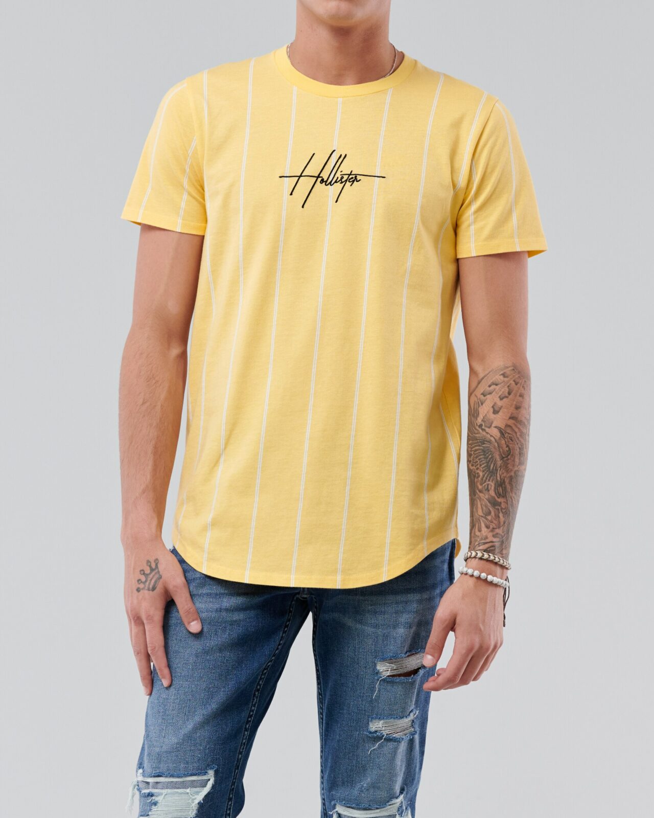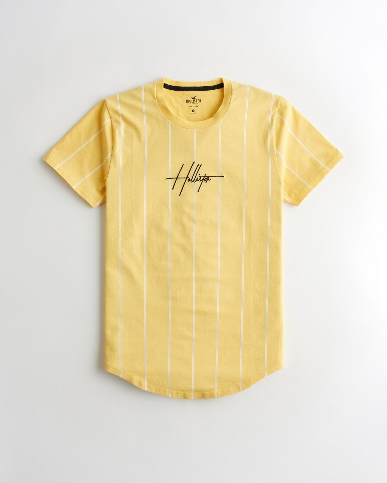 Áo thun nam Hollister HCO-T193 Striped Yellow Curved Hem T-Shirt