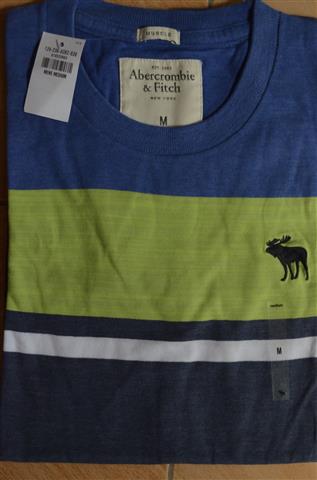 - Áo sọc ngang, họa tiết logo Abercrombie đơn giản.