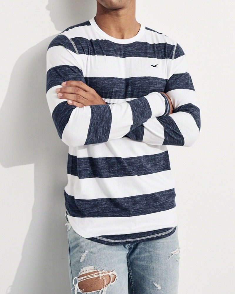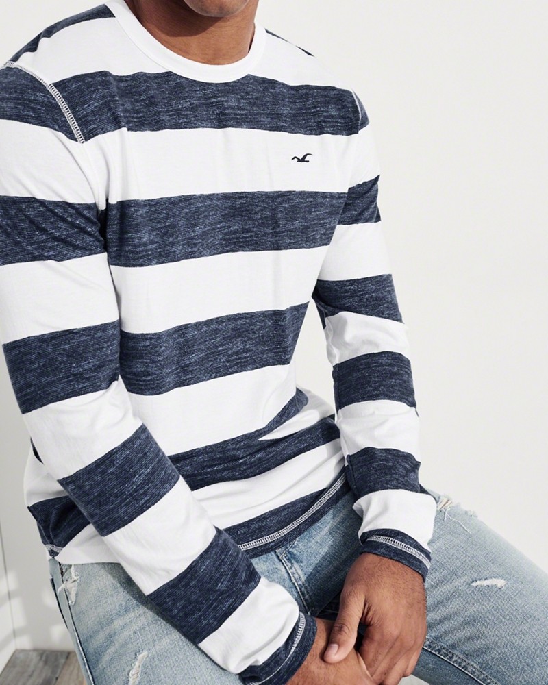 Áo thun nam tay dài Hollister HCO-HL07 Crewneck T-Shirt là áo thun Hollister sọc trắng xanh. Những ngày se lạnh thì không gì tuyệt vời bằng một chiếc áo tay dài đúng không các bạn? Áo thun nam Hollister tay dài giúp chúng ta vừa đủ giữ ấm đồng thời vẫn thể hiện được