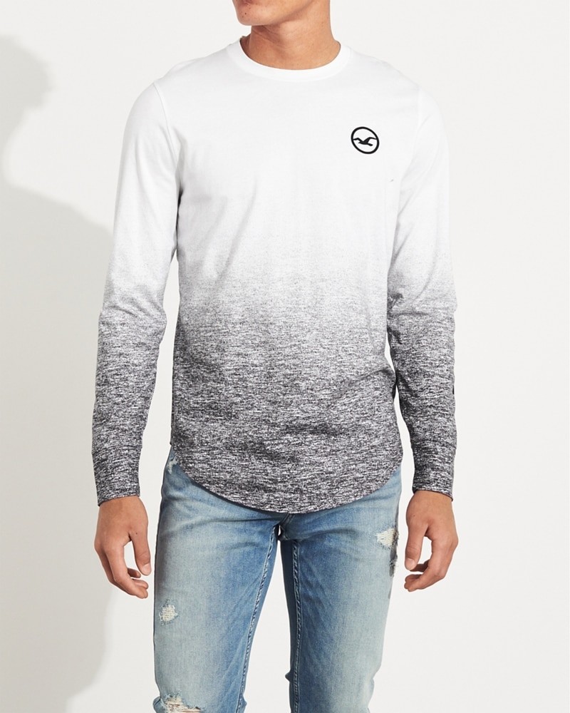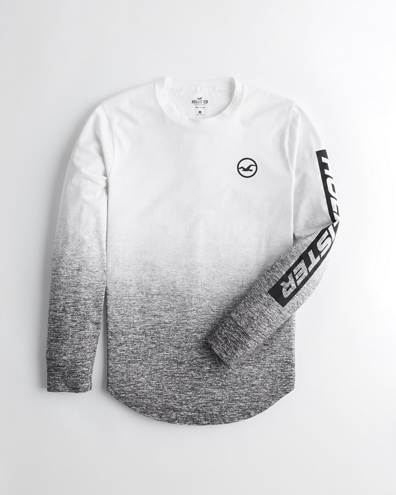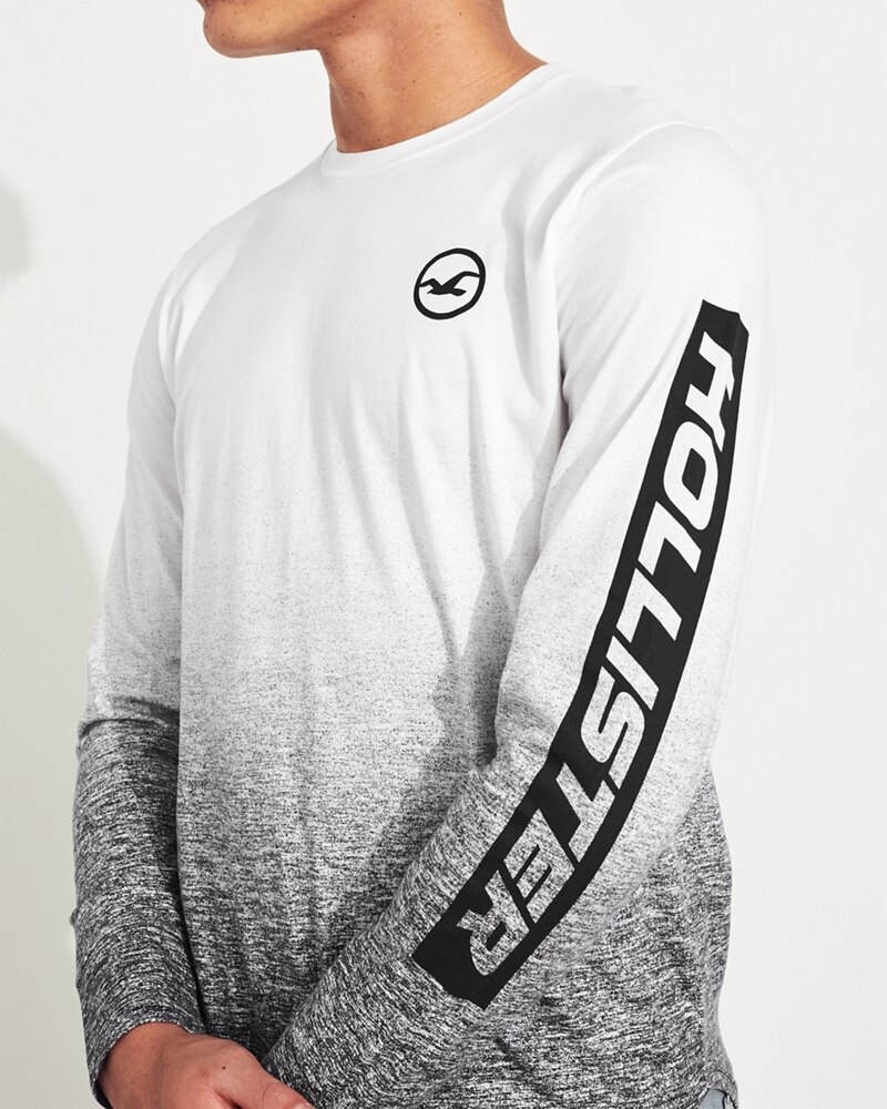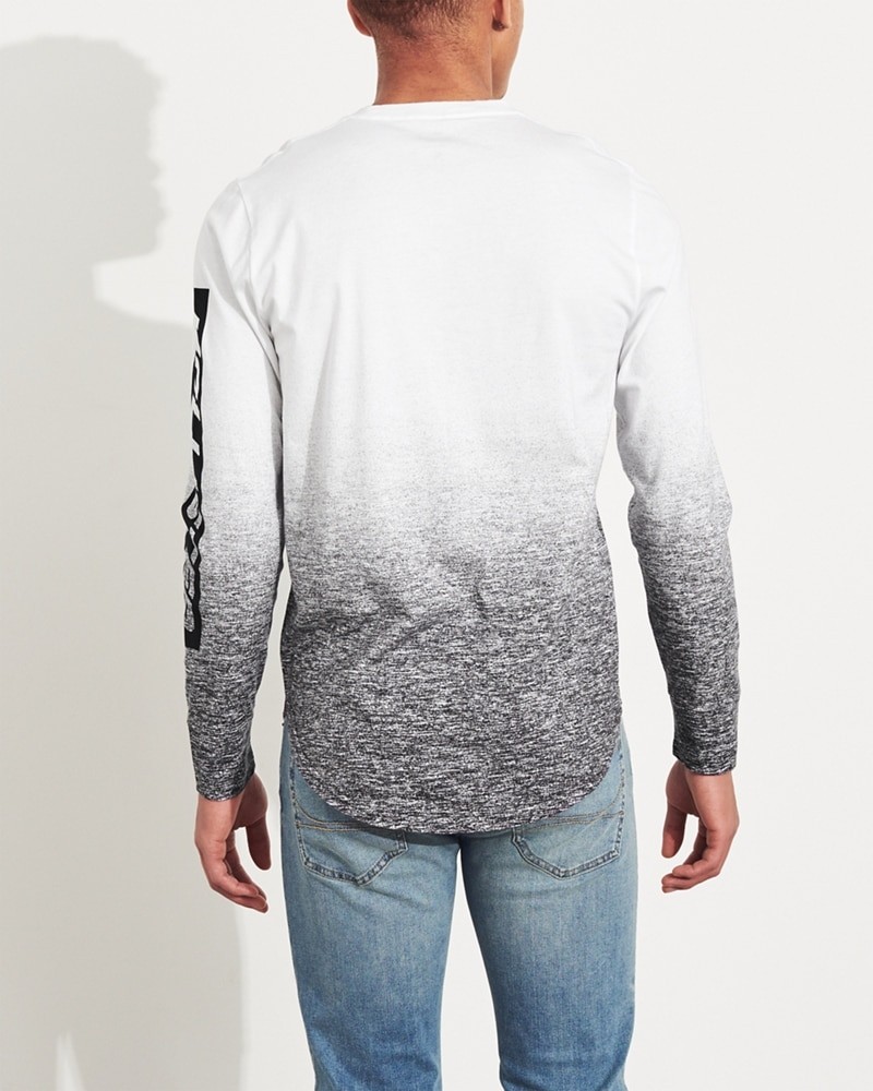 Áo thun nam tay dài Hollister HCO-HL60 Ombré Print Logo Graphic Tee là áo thun Hollister màu trắng white ở trên loang màu xam đen xuống bên dưới. Đây là áo có lai bầu trẻ trung hiện đại.