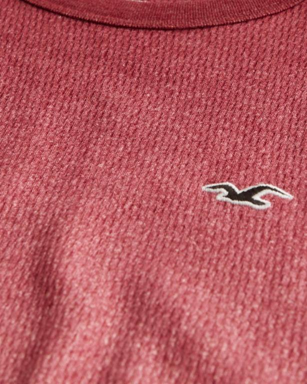 Áo thun nam tay dài Hollister HCO-HL91 Ombre Waffle Curved Hem T-Shirt Heather Red là áo thun Hollister nam dài tay có màu trắng pha màu đỏ. Áo có chất vải đan xéo lạ là đặc biệt. Đây là dòng áo đặc trưng của mùa thu đông. Trên ngực áo thêu logo biểu tượng chim hải âu màu xanh đen viền trắng rất đẹp rất sắc sảo. Áo có dạng lai bầu hiện đại. Áo có chất vải 60% cotton, 40% polyester vải khá dày nhưng thấm hút mồ hôi, mang cảm giác ấm áp và nhưng vẫn thoải mái cho người mặc.