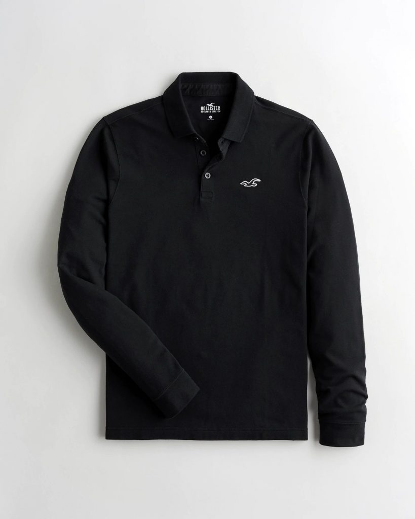 Áo thun nam tay dài Hollister HCO-PL01 Stretch Polo Black