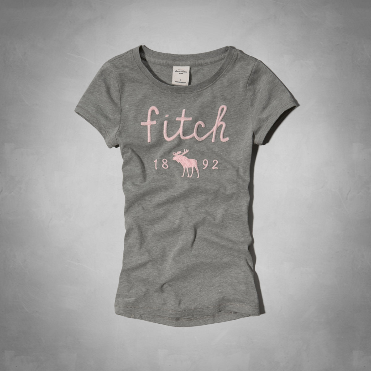 Áo thun nữ A&Fitch Heritage Tee AF-NT37 màu xám. Trên nền áo màu xám là chữ Fitch 1892 cùng logo tuần lộc màu hồng được thêu nổi sắc nét.