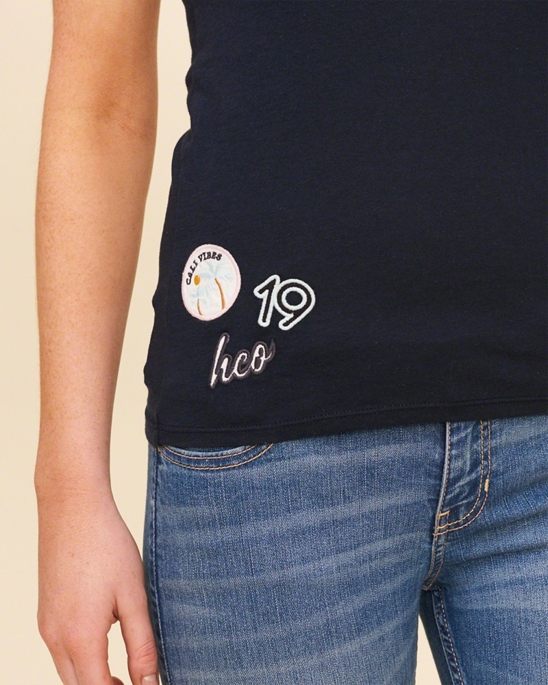 Áo thun nữ Hollister HCO-US-NT01 Applique Logo Graphic Tee là Áo thun Hollister xanh navy, hàng xách tay. Áo thun nữ này có chất vải cotton thoáng mát, tạo cảm giác thoải mái khi mặc.