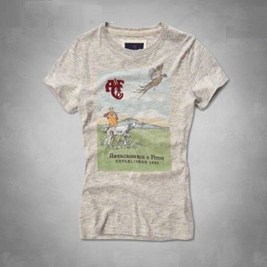 Áo thun nữ tay ngắn A&F AF-NT53 màu xám. Chất vải 100% cotton, dày, mịn. Áo được in hình thợ săn cùng chữ A&F màu đỏ đắp nổi bật.