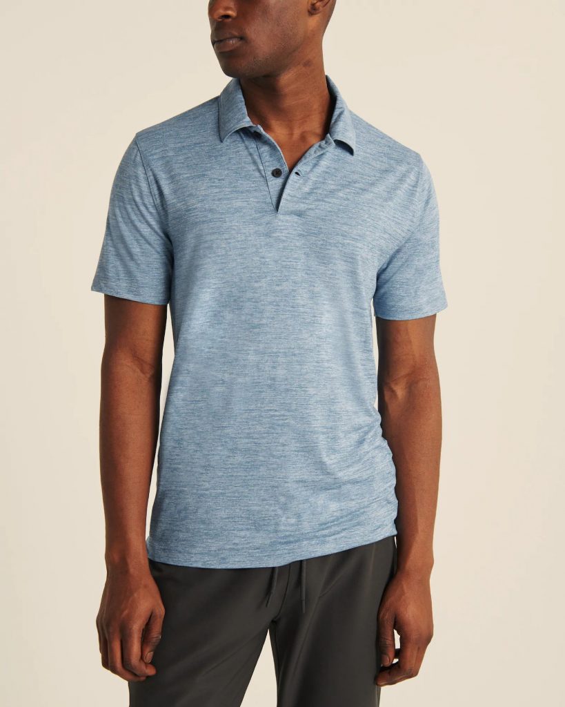Áo thun polo Abercrombie AF-P132 Air Knit Polo heather light blue là loại áo thun thể thao nam cổ bẻ màu xanh da trời. Áo thun nam này có chất vải Body:88% Polyester, 12% Elastane tạo cảm giác mát mẻ khi mặc. Đây là loại áo thun thể thao có chất vải co giãn 4 chiều và thoáng khí rất tốt. Áo có chất vải mỏng và rất mềm thoáng mát. Vạt cổ áo có hai nút. Áo có form ôm signature fit tôn dáng người mặc. Chiếc áo thun thể thao abercrombie này có kiểu dáng đơn giản dễ kết hợp với quần shorts hoặc quần jeans.