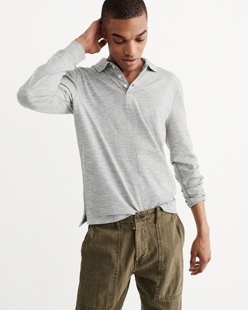 Áo thun polo Abercrombie & Fitch AF-US-P25 Long Sleeve Sweater Knit Polo là Áo thun abercrombie & fitch tay dài màu xám, hàng xách tay. Áo thun nam này có chất vải cotton thoáng mát, tạo cảm giác thoải mái khi mặc.