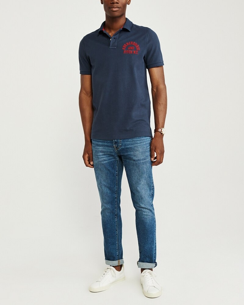 Áo thun polo Abercrombie & Fitch AF-US-P43 Stretch Logo Polo là Áo thun abercrombie & fitch màu xanh navy form Signature Fit, hàng xách tay. Áo thun nam này có chất vải 97% Cotton, 3% Elastane thoáng mát, tạo cảm giác thoải mái khi mặc. Trên ngực áo thêu hàng chứ ABERCROMBIE AND FITCH N.Y màu đỏ rất tỉ mỉ và rất đẹp. Chiếc Áo thun nam abercrombie & fitch có kiểu dáng đơn giản dễ kết hợp với quần short hoặc quần jean.