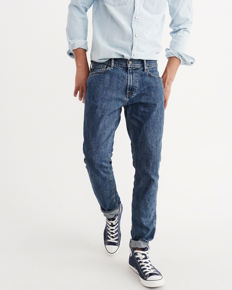 Quần Jean nam Abercrombie & Fitch AF-US-J14 Skinny Jeans có màu xanh jean. Chiếc quần dài nam Abercrombie & Fitch này có thiết kế phong cách, cá tính, trẻ trung.