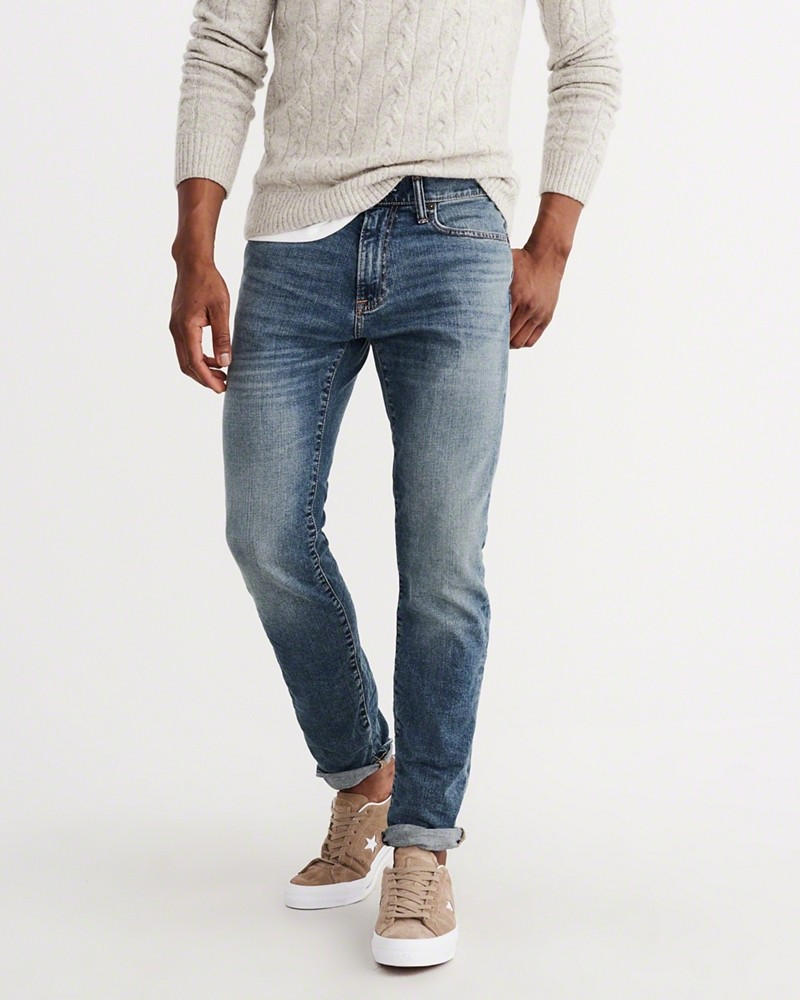 Quần Jean nam Abercrombie & Fitch AF-US-J22 Skinny Jeans có màu xanh jean. Chiếc quần dài nam Abercrombie & Fitch này có thiết kế phong cách, cá tính, trẻ trung.