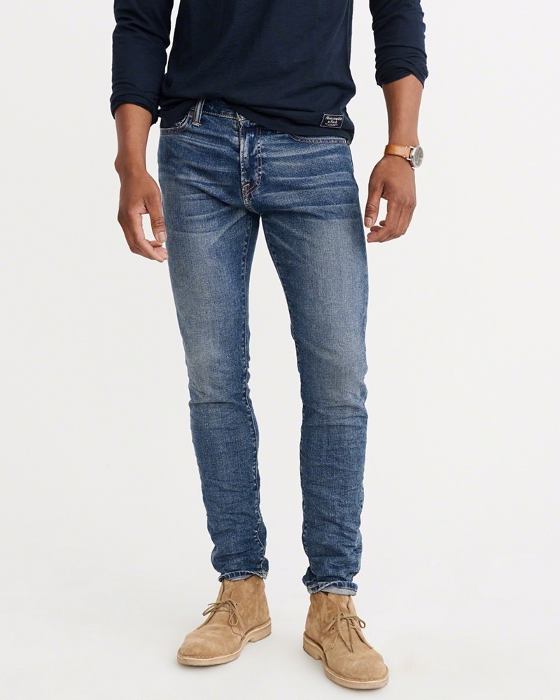 Quần Jean nam Abercrombie & Fitch AF-US-J32 Super Skinny Jeans có màu xanh jean. Chiếc quần dài nam Abercrombie & Fitch này có thiết kế phong cách, cá tính, trẻ trung.